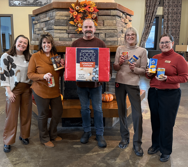 North Haven Communities display the non-perishable food items collected during their holiday food drive to support military families, in partnership with the local Armed Services YMCA (ASYMCA).